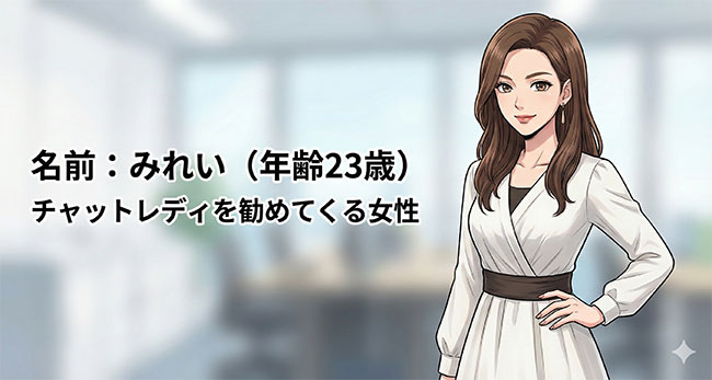 そんな時に、みれいという美人が「あなたにピッタリな仕事があるわよ」とチャットレディになることを勧めてきのたです。